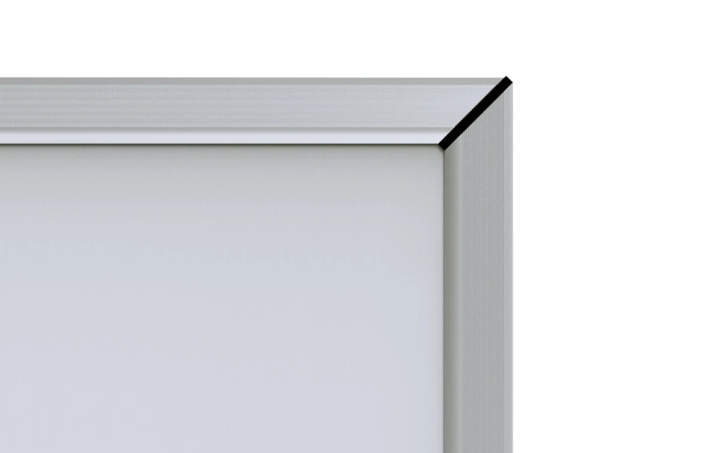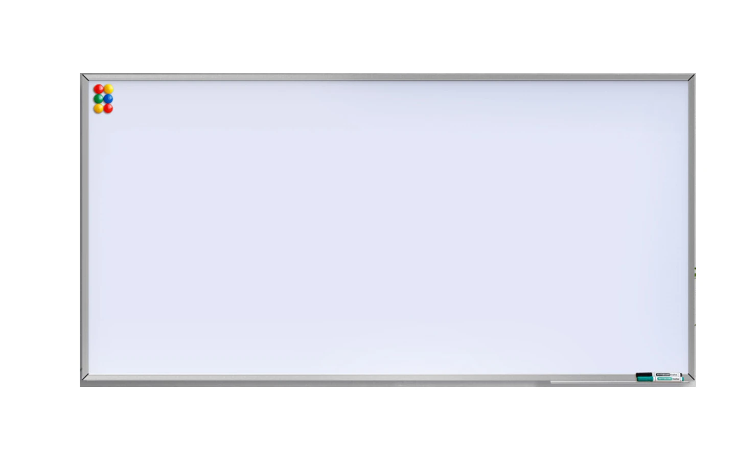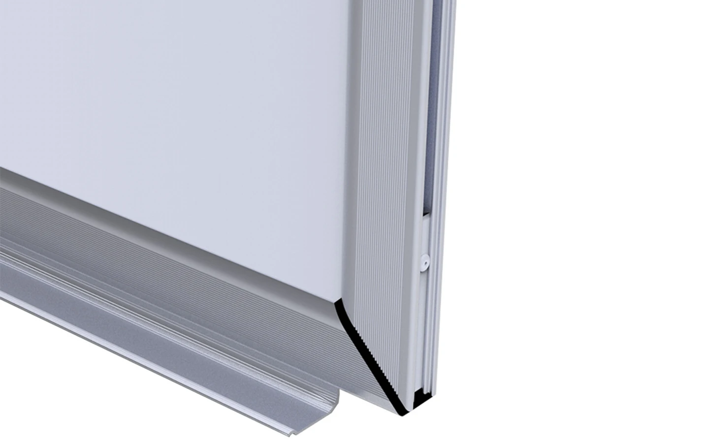 Для посилення конструкції панель дошки оснащена алюмінієвою рамкою: профіль запобігає деформації та повідомляє додаткову стійкість до механічних ударів, пошкоджень. Кути закриті пластмасовими заглушками для мінімізації травм під час експлуатації. Комплектується дошка полицею для зберігання маркерів, губкою, спреєм-очисником.
