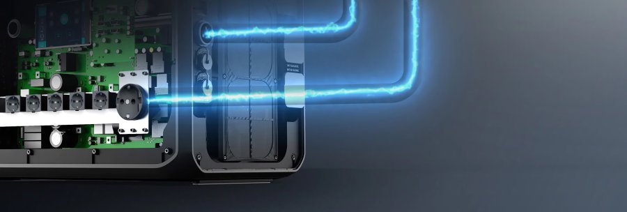 Оснащений чистим синусоїдальним інвертором потужністю 3000 Вт та можливістю регулювання швидкості заряджання змінного струму (блок живлення не потрібен, достатньо одного зарядного кабелю). Система живлення AC300 також може заряджатися потужністю від 1800 Вт до 3000 Вт через настінні розетки відповідно до ваших потреб.