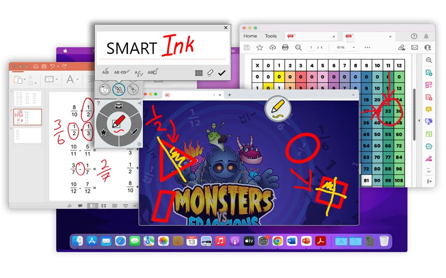 Електронне чорнило SMART ink дозволяє залишати записи та позначки на відкритих у вбудованому браузері, сайтах, PDF, а також Microsoft Office, зберігаючи їх у вигляді картинки або документа.